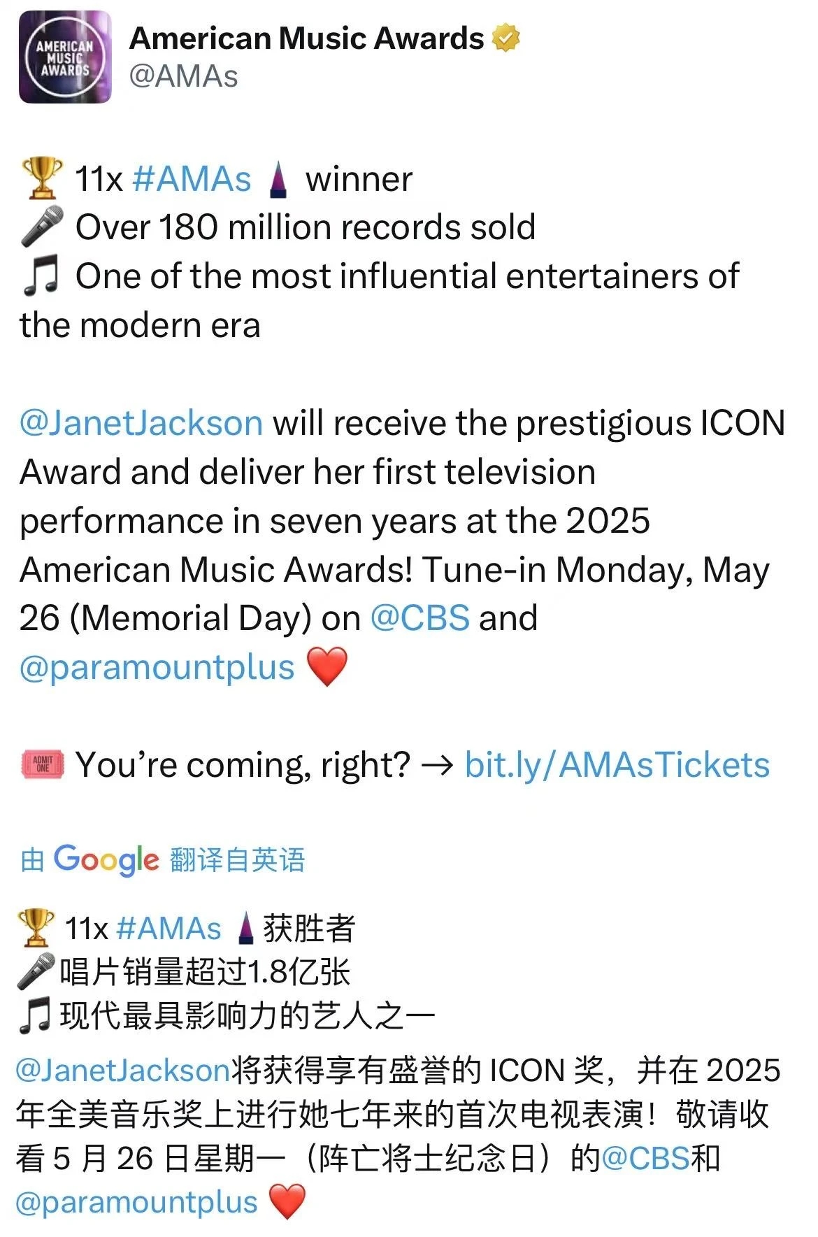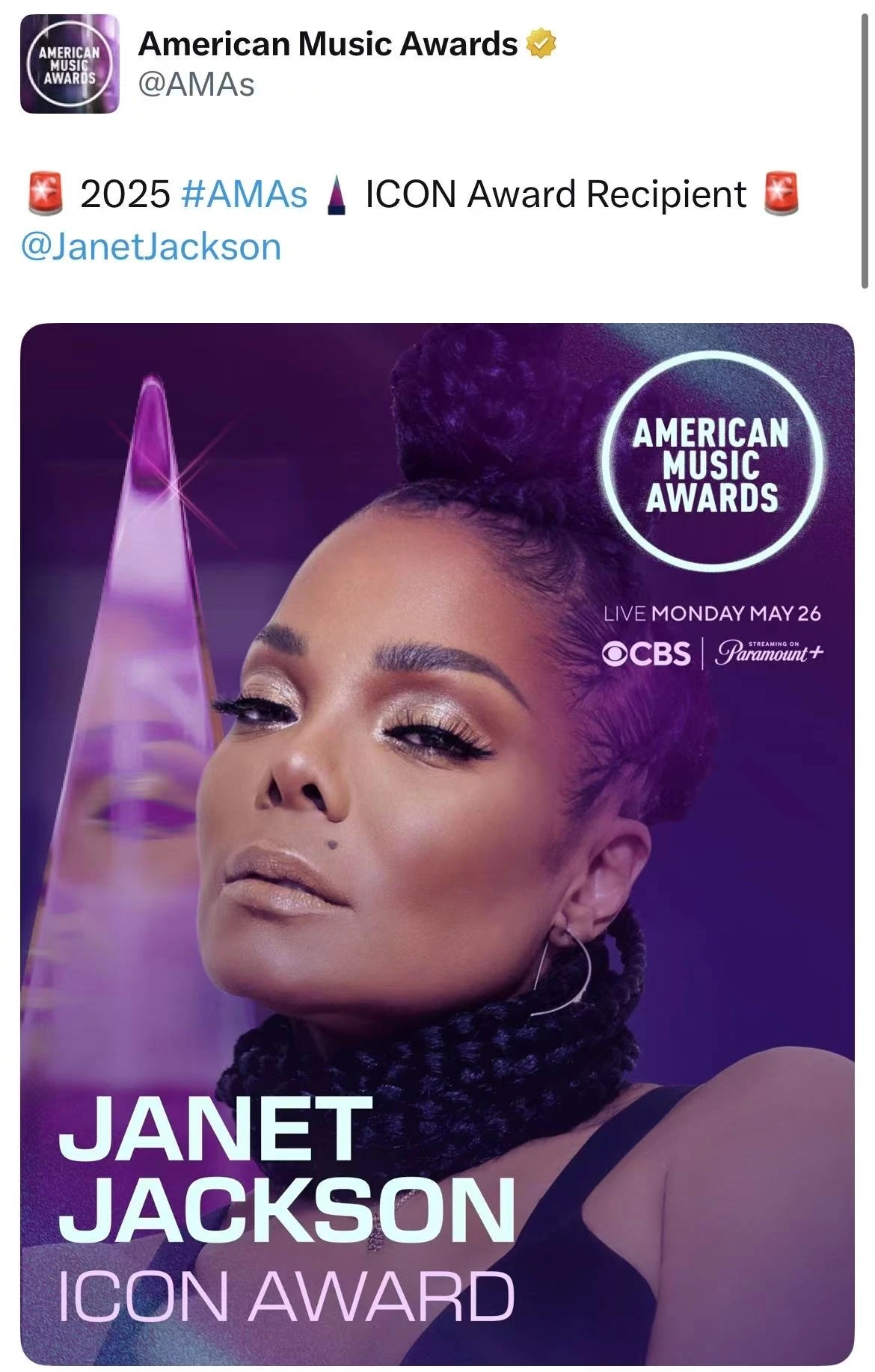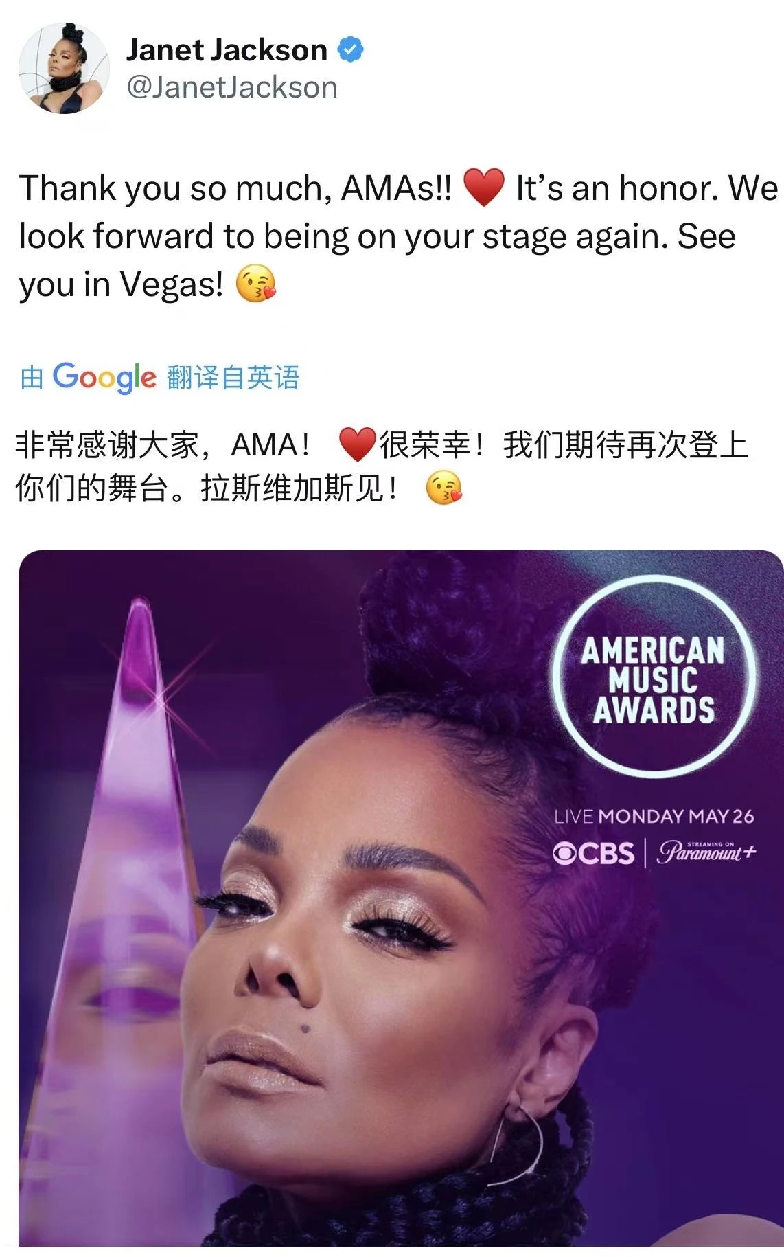 祝贺!迈克尔杰克逊的巨星妹妹珍妮杰克逊奖将获颁全美音乐奖“偶像大奖”并在5月26日演出!