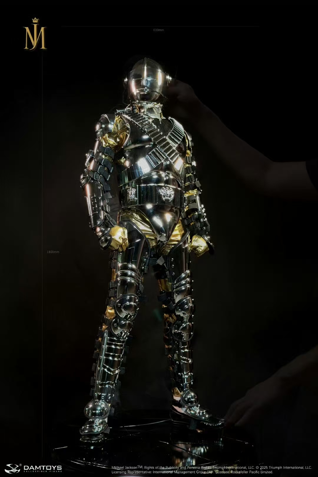 这件迈克尔·杰克逊全身雕像艺术品,豪华精致的盔甲版本灵感来自迈克尔·杰克逊在1997年哥本哈根的“历史”演唱会演出开始时所穿的太空服装,1/2还原!